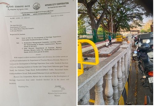 ಮೈಸೂರು, ಮಾರ್ಚ್,16,2026 (www.kannadapost.com):ಕೇಂದ್ರ ಸರ್ಕಾರದ ಪ್ರವಾಸೋದ್ಯಮ ಸಚಿವಾಲಯ ಜಾರಿಗೆ ತಂದಿರುವ ‘ಸ್ವದೇಶ ದರ್ಶನ 2.0’ ಯೋಜನೆಯಡಿ ಮೈಸೂರಿನಲ್ಲಿ ಹೆರಿಟೇಜ್ ಎಕ್ಸ್ಪೀರಿಯನ್ಸ್ ಝೋನ್ ಅಭಿವೃದ್ಧಿ ಮಾಡುವ ಪ್ರಸ್ತಾವನೆ ಇದೀಗ ವಿವಾದಕ್ಕೆ ಕಾರಣವಾಗಿದೆ. ವಿಶೇಷವಾಗಿ ಮೈಸೂರು ಅರಮನೆ ಮುಂಭಾಗದ ಪಾದಚಾರಿ ಮಾರ್ಗದಲ್ಲೇ ಟಾಂಗಾ ನಿಲ್ದಾಣ (Tonga Stand) ನಿರ್ಮಿಸಲು ಮುಂದಾಗಿರುವ ಕ್ರಮಕ್ಕೆ ಸ್ಥಳೀಯ ನಾಗರಿಕರು ತೀವ್ರ ವಿರೋಧ ವ್ಯಕ್ತಪಡಿಸಿದ್ದಾರೆ.