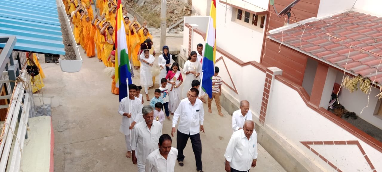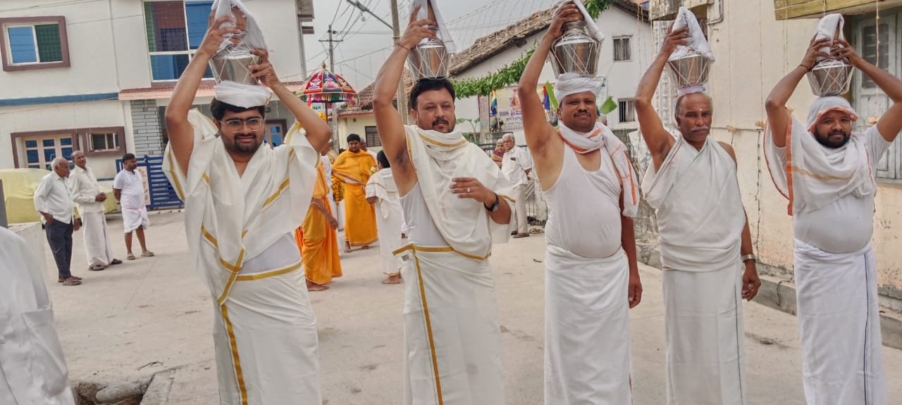 ಪಂಚಕಳಸ, ಅಷ್ಟಮಂಗಲ ಹಾಗೂ ಪಂಚವರ್ಣದ ಬಾವುಟಗಳು ಮೆರವಣಿಗೆಗೆ ವಿಶೇಷ ಶೋಭೆ ನೀಡಿದವು.