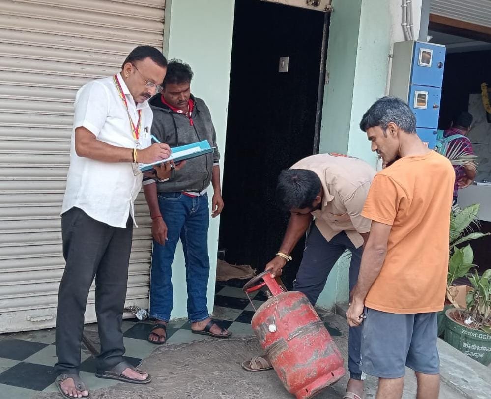 ಪರಿಶೀಲನೆಯ ವೇಳೆ ವಾಣಿಜ್ಯ ಬಳಕೆಗೆ ಗೃಹಬಳಕೆಯ ಅನಿಲ ಸಿಲಿಂಡರ್ ಬಳಸುತ್ತಿರುವುದು ಪತ್ತೆಯಾಯಿತು.