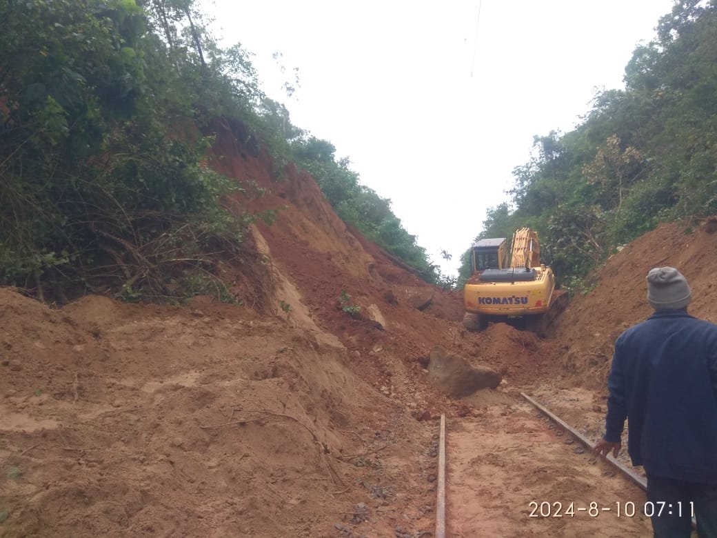 ಹಾಸನ-ಮಂಗಳೂರು ಮಾರ್ಗದ ಕಿಲೋಮೀಟರ್ 42/43 ರ ಮಧ್ಯೆ ಭೂಕುಸಿತಮರಗಳ ಸಮೇತವಾಗಿ ರೈಲ್ವೆ ಹಳಿ ಮೇಲೆ ಭಾರಿ ಪ್ರಮಾಣದಲ್ಲಿ ಮಣ್ಣು ಕುಸಿದಿದೆ.