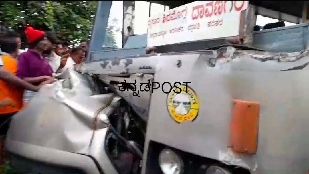 ಕೆಎಸ್ಆರ್ಟಿಸಿ ಬಸ್ ಡಿಕ್ಕಿ; ಅಪ್ಪಚ್ಚಿಯಾದ ಆಲ್ಟೋ ಕಾರಿನಲ್ಲಿದ್ದ ಇಬ್ಬರ ದಾರುಣ ಸಾವು