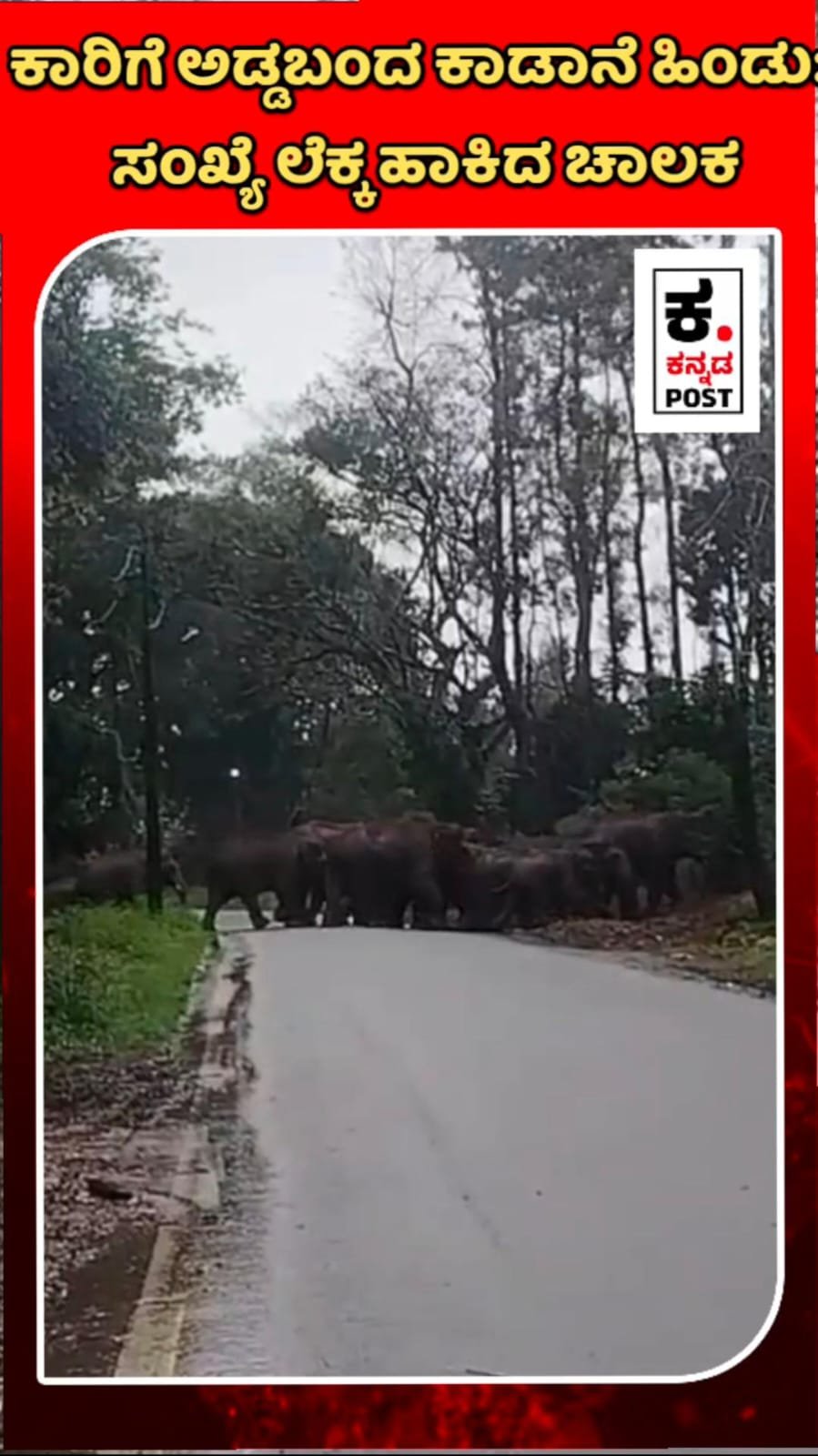 ಒಂದು ಕಾಫಿ ತೋಟದಿಂದ ಮತ್ತೊಂದು ಕಾಫಿ ತೋಟಕ್ಕೆ ರಸ್ತೆ ದಾಟುತ್ತಿದ್ದ ಸುಮಾರು ಇಪ್ಪತ್ತಕ್ಕೂ ಹೆಚ್ಚು ಕಾಡಾನೆಗಳ ಹಿಂಡು, ಮರಿಗಳನ್ನೂ ಒಳಗೊಂಡಿತ್ತು.