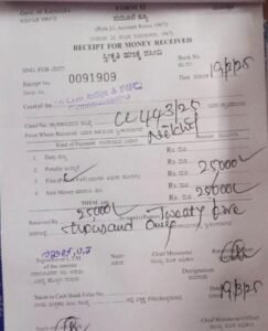 ನ್ಯಾಯಾಲಯದಲ್ಲಿ ದಂಡ ಕಟ್ಟಿಸಿಕೊಂಡ ಸಿಬ್ಬಂದಿ ರಸೀದಿಯಲ್ಲಿ ನಾಳೆಯ ದಿನಾಂಕ 19/03/2025 ಎಂದು ನಮೂದಿಸಿದ್ದಾರೆ. ರಸೀದಿ ಸಾಮಾಜಿಕ ಜಾಲತಾಣಗಳಲ್ಲಿ ಹರಿದಾಡುತ್ತಿದ್ದು ಚರ್ಚೆಗೆ ಗ್ರಾಸವಾಗಿದೆ.