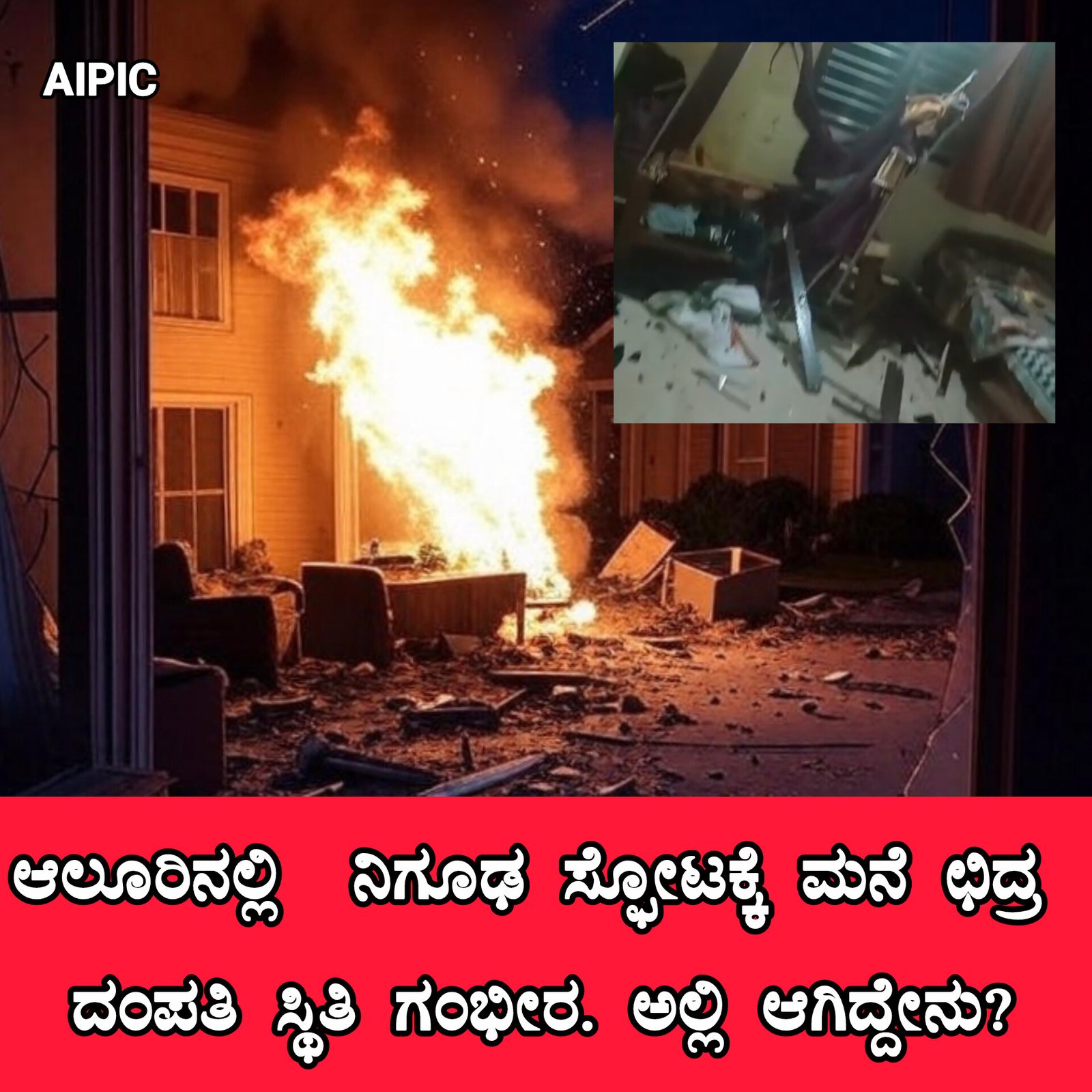 A mysterious explosion in a residential house in Old Alur, on the outskirts of Alur town, left a couple seriously injured and the walls and belongings of the house shattered, causing concern among locals.
