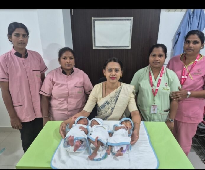 A pregnant woman has given birth to triplets at Shivaya IVF Hospital in Hassan city. The hospital's obstetrician-gynecologist, Dr. Bhavya Sunil, successfully treated her.