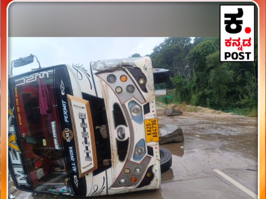 ಮಂಗಳೂರಿನಿಂದ ಬೆಂಗಳೂರಿಗೆ ಮೀನು ಸಾಗಿಸುತ್ತಿದ್ದ KA-02-AB-4796 ನಂಬರ್ನ ಲಾರಿಯೊಂದು ಭಾರೀ ಮಳೆಯ ಹಿನ್ನೆಲೆಯಲ್ಲಿ ರಸ್ತೆ ಕಾಣದೆ ಚಾಲಕನ ನಿಯಂತ್ರಣ ತಪ್ಪಿ ಪಲ್ಟಿಯಾಗಿದೆ. ಈ ಘಟನೆಯಲ್ಲಿ ಲಾರಿ ಚಾಲಕನಿಗೆ ಸಣ್ಣಪುಟ್ಟ ಗಾಯಗಳಾಗಿದ್ದು, ಯಾವುದೇ ಪ್ರಾಣಹಾನಿ ಸಂಭವಿಸಿಲ್ಲ. ವೀಕೆಂಡ್ನಿಂದಾಗಿ ಹೆದ್ದಾರಿಯಲ್ಲಿ ವಾಹನಗಳ ಸಂಚಾರ ಹೆಚ್ಚಾಗಿದ್ದರೂ, ದೊಡ್ಡ ಅನಾಹುತವೊಂದು ತಪ್ಪಿದೆ.