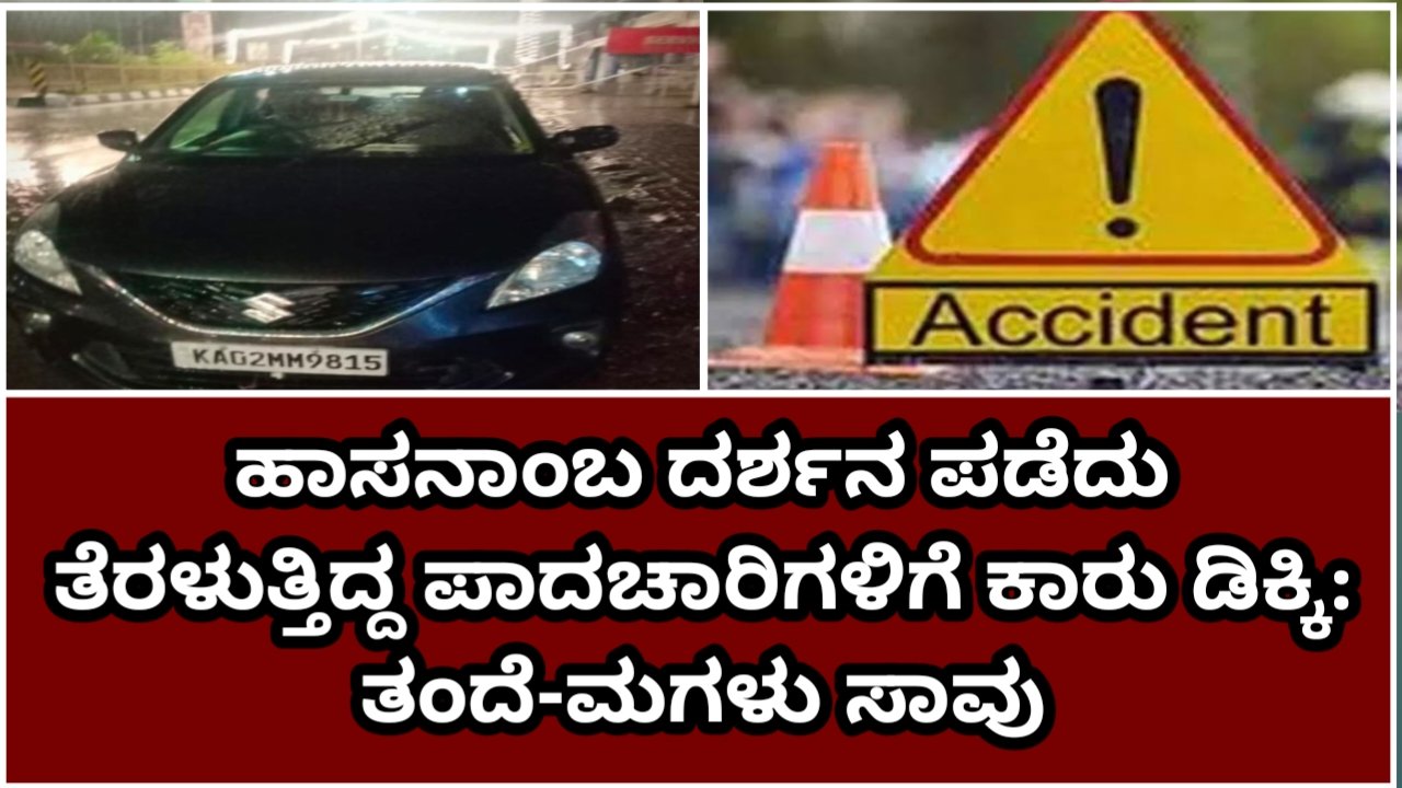 ಹಾಸನ(www.kannadapost.in): ಹಾಸನಾಂಬೆ ದರ್ಶನ ಪಡೆದು ಸಂಬಂಧಿಕರ ಮನೆಗೆ ತೆರಳುತ್ತಿದ್ದ ಪಾದಚಾರಿಗಳಿಗೆ ಕಾರು ಡಿಕ್ಕಿಯಾಗಿ ತಂದೆ-ಮಗಳು ಮೃತಪಟ್ಟ ದಾರುಣ ಘಟನೆ ಗುರುವಾರ ರಾತ್ರಿ ನಗರದ ತಣ್ಣೀರುಹಳ್ಳದಲ್ಲಿ ನಡೆದಿದೆ.