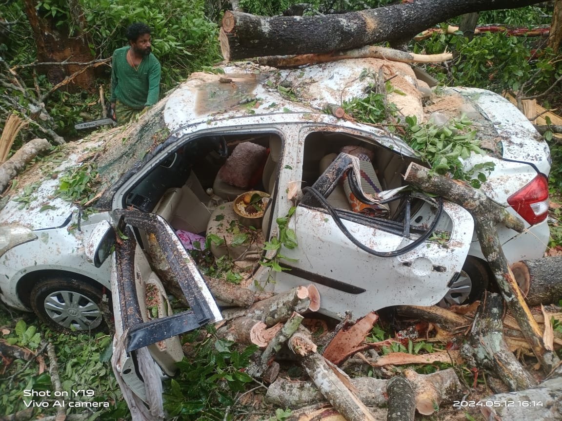 ಗಾಳಿ-ಮಳೆಗೆ ಉರುಳಿದ ರಸ್ತೆ ಬದಿಯ ಮರ: ಪಾದಚಾರಿ ಮಹಿಳೆ ಬ*ಲಿ, ಕಾರು ಜಖಂ, ಮೂವರಿಗೆ ಗಾಯ
