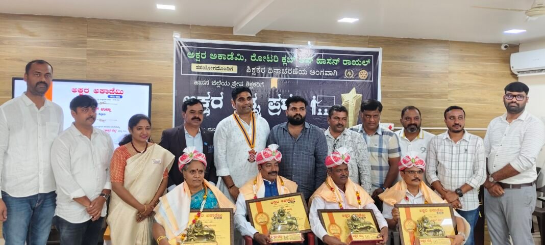 Home News ಹಾಸನ: ಶಿಕ್ಷಕರ ದಿನಾಚರಣೆ ನಿಮಿತ್ತ ಅಕ್ಷರ ರತ್ನ ಪ್ರಶಸ್ತಿ ವಿತರಣೆ