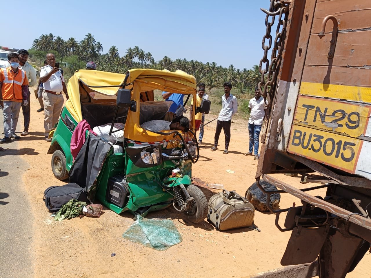ಅಪಘಾತದ ನಂತರ ಗಾಯಾಳುಗಳು ಅಪ್ಪಚ್ಚಿಯಾದ ಆಟೋದಲ್ಲಿ ಸಿಲುಕಿ ನರಳಾಡಿದರು. ಸ್ಥಳೀಯರು ಗಾಯಾಳುಗಳನ್ನು ಹೊರತೆಗೆದು ಆಸ್ಪತ್ರೆಗೆ ಕಳುಹಿಸಿದರು.