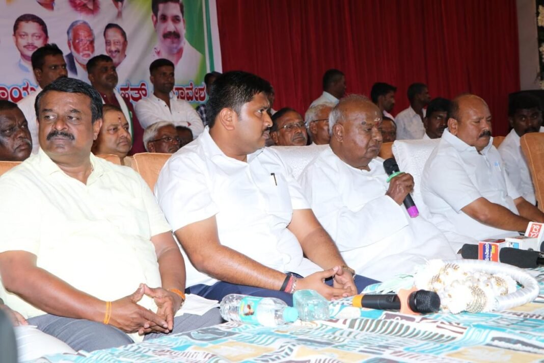 ಹಾಸನ: ನಿರೀಕ್ಷೆಯಂತೆಯೇ ಹಾಸನದಿಂದ ಪ್ರಜ್ವಲ್ ರೇವಣ್ಣ, ಮಂಡ್ಯದಿಂದ ಮಾಜಿ ಸಿಎಂ ಹೆಚ್.ಡಿ.ಕುಮಾರಸ್ವಾಮಿ ಹಾಗೂ ಕೋಲಾರದಿಂದ ಮಲ್ಲೇಶಬಾಬು ಕಣಕ್ಕಿಳಿಯಲಿದ್ದಾರೆ ಎಂದು ಮಾಜಿ ಪ್ರಧಾನಿ ಹೆಚ್.ಡಿ.ದೇವೇಗೌಡರು ತಿಳಿಸಿದರು.
