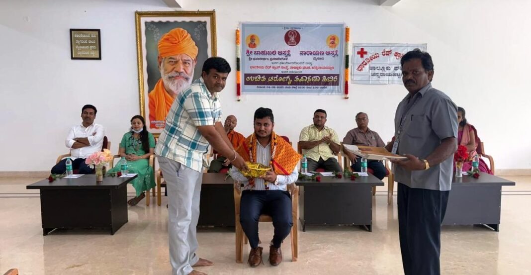 ಶಿಬಿರದ ಉದ್ಘಾಟನೆಯನ್ನು ಭಾರತೀಯ ರೆಡ್ ಕ್ರಾಸ್ ಸಂಸ್ಥೆ ತಾಲ್ಲೂಕು ಚೇರ್ಮನ್ ಭರತ್ ಕುಮಾರ್ ಹೆಚ್. ಜಿ ಹಾಗೂ ಬಾಹುಬಲಿ ಆಸ್ಪತ್ರೆ ವೈದ್ಯಾಧಿಕಾರಿ ಡಾ. ಪೂರ್ಣಿಮಾ ನೆರವೇರಿಸಿದರು. ಹೆಚ್. ಜಿ. ಭರತ್ ಕುಮಾರ್ ರವರು ಮಾತನಾಡಿ ನಮ್ಮ ದೇಶಕ್ಕೆ ರೈತನು ಅನ್ನದಾತ ಎಂದು ಭಾವಿಸುತ್ತಾರೆ. ಕಾರಣ ರೈತ ತಾನು ಬೆಳೆದ ಶುದ್ಧ ದವಸ ಧಾನ್ಯ ಹಾಗೂ ಆಹಾರ ಸಾಮಗ್ರಿಗಳನ್ನು ಮನುಜ ಕುಲಕ್ಕೆ ನೀಡುವ ಪರಿಶುದ್ಧ ಮನಸ್ಸು ಹೊಂದಿರುವ ಏಕೈಕ ವ್ಯಕ್ತಿ, ಇಂದು ಕೋಟ್ಯಂತರ ಜನರಿಗೆ ಅನ್ನ ನೀಡುವ ಅನ್ನದಾತ, ಭೂಮಿ ತಾಯಿಗೆ ಇಬ್ಬರು ಮಕ್ಕಳು ಮೊದಲನೆ ಯವರು ರೈತ, ಮತ್ತೊಬ್ಬರು ಯೋಧ, ರೈತ ತಾನು ಬೆಳೆಯೋ ಬೆಳೆಯಿಂದ ಲಕ್ಷಾಂತರ ಕುಟುಂಬಕ್ಕೆ ಅನ್ನದಾತನಾಗುತ್ತಾನೆ.