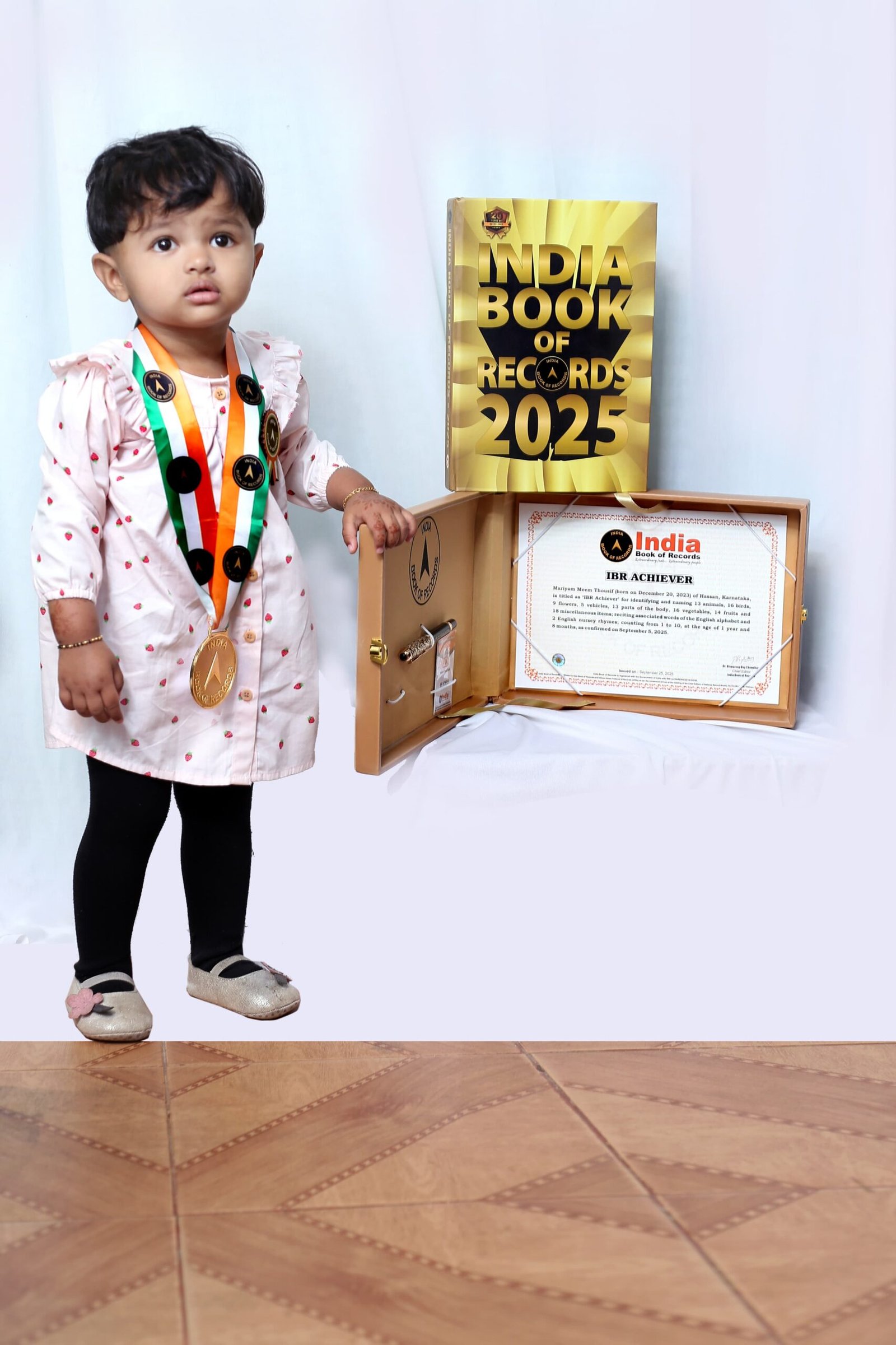 ಇಷ್ಟಕ್ಕೇ ನಿಲ್ಲದೆ, ಅವಳು 10 ವಿವಿಧ ವಸ್ತುಗಳ ಹೆಸರನ್ನು ಗುರುತಿಸಬಲ್ಲಳು, ಇಂಗ್ಲಿಷ್ ಅಕ್ಷರಮಾಲೆಯ ಪ್ರತಿ ಅಕ್ಷರಕ್ಕೆ ಸಂಬಂಧಿಸಿದ ಪದಗಳನ್ನು ಹೇಳಬಲ್ಲಳು, ಒಂದರಿಂದ ಹತ್ತರವರಗೆ ಸಂಖ್ಯೆಗಳನ್ನು ಎಣಿಸಬಲ್ಲಳು ಮತ್ತು ಎರಡು ಇಂಗ್ಲಿಷ್ ನರ್ಸರಿ ಪದ್ಯಗಳನ್ನು ಸರಾಗವಾಗಿ ಪಾಠಿಸಬಲ್ಲಳು.