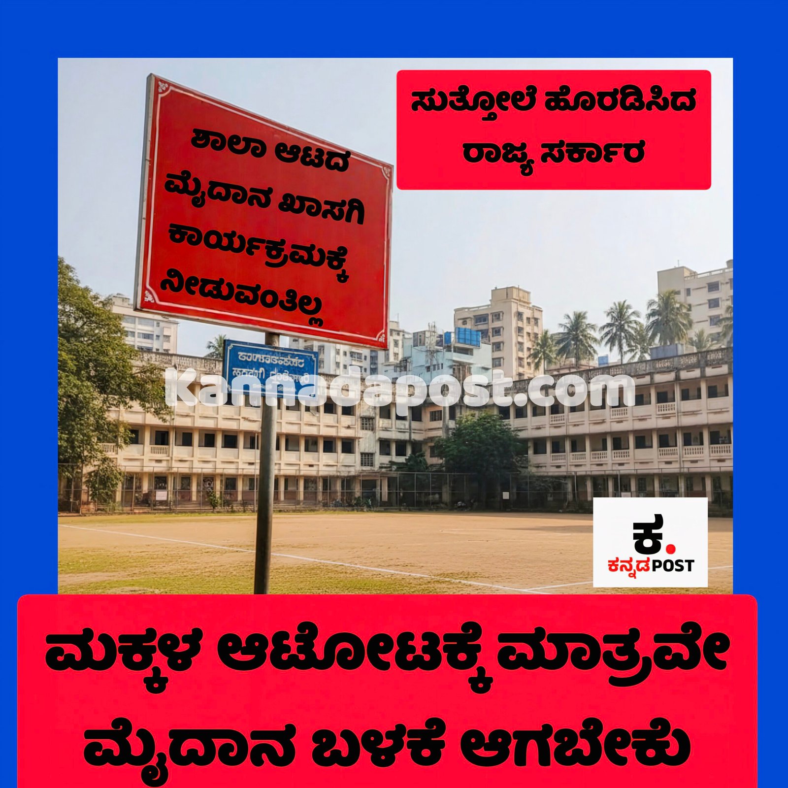 ಬೆಂಗಳೂರು: ಸರ್ಕಾರಿ ಶಾಲಾ ಮೈದಾನ ಮಕ್ಕಳ ಆಟೋಟಕ್ಕೆ‌ ಮಾತ್ರ ಬಳಕೆ‌ ಆಗಬೇಕು: ಖಾಸಗಿ ಕಾರ್ಯಕ್ರಮಗಳಿಗೆ ಅವಕಾಶ ಇಲ್ಲ- ಶಿಕ್ಷಣ ಇಲಾಖೆ ಸ್ಪಷ್ಟ ಸುತ್ತೋಲೆ
