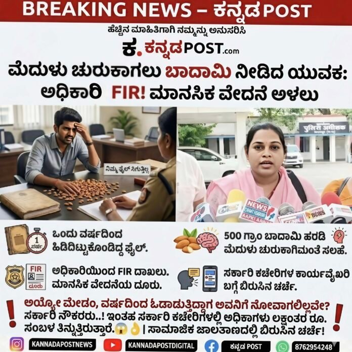 Chattisgarh:ಫೈಲ್ ಸಿಗದೆ ಬೇಸತ್ತ ಯುವಕ ಅಧಿಕಾರಿಯ ಟೇಬಲ್ ಮೇಲೆ ಬಾದಾಮಿ ಚೆಲ್ಲಿ ವಿನೂತನ ಪ್ರತಿಭಟನೆ ನಡೆಸಿದ ಘಟನೆ ವೈರಲ್. ಸಂಪೂರ್ಣ ಸುದ್ದಿ ಓದಿ.