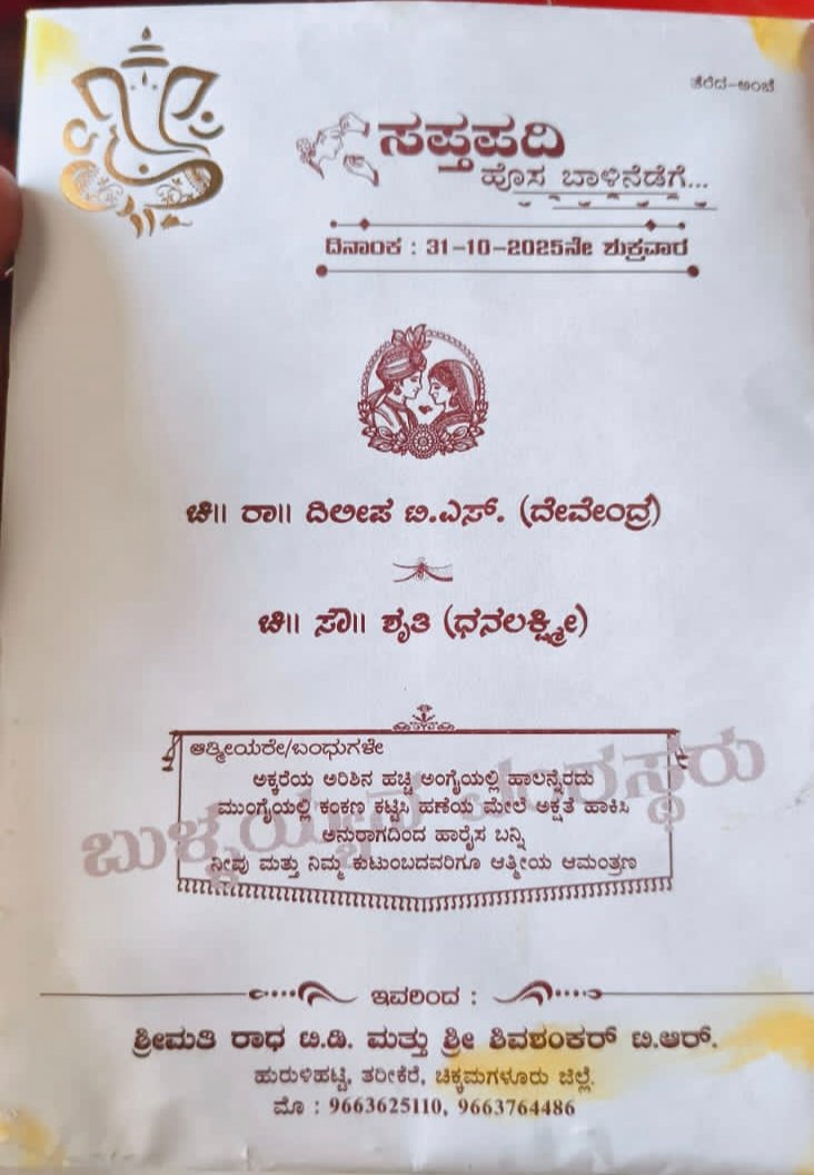 ಶ್ರುತಿ (24) ಮೃತ ದುರ್ದೈವಿ. ಅವರು ನಾಳೆ ತರೀಕೆರೆ ತಾಲೂಕಿನ ಹುರುಳಿಕಟ್ಟಿಯ ದಿಲೀಪ್ ಎನ್ನುವ ಯುವಕನನ್ನು ವರಿಸುವವರಿದ್ದರು.