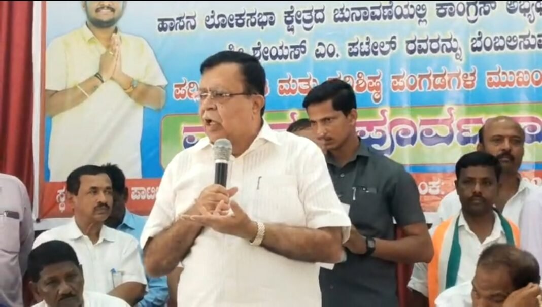 ನಗರದಲ್ಲಿ ಆಯೋಜಿಸಿದ್ದ ಹಾಸನ ಲೋಕಸಭಾ ಕ್ಷೇತ್ರದ ಕಾಂಗ್ರೆಸ್ ಅಭ್ಯರ್ಥಿ ಶ್ರೇಯಸ್ ಪಟೇಲ್ ಅವರನ್ನು ಬೆಂಬಲಿಸುವ ಕುರಿತು ಪರಿಶಿಷ್ಟ ಜಾತಿ, ಪರಿಶಿಷ್ಟ ಪಂಗಡಗಳ ಮುಖಂಡರ ಪೂರ್ವಭಾವಿ ಸಭೆಯಲ್ಲಿ ಮಾತನಾಡುವಾಗ ಮತ್ತೊಮ್ಮೆ ನಾಲಿಗೆ ಹರಿಬಿಟ್ಟರು.