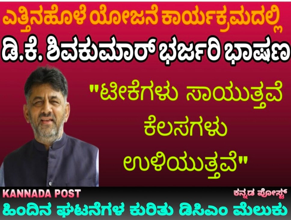 ಹಾಸನ : ಸಕಲೇಶಪುರ ತಾಲ್ಲೂಕಿನ, ಹೆಬ್ಬನಹಳ್ಳಿಯಲ್ಲಿ ಎತ್ತಿನಹೊಳೆ ಯೋಜನೆ ಮೊದಲ ಹಂತ-೧ ಉದ್ಘಾಟನೆ ಕಾರ್ಯಕ್ರಮದಲ್ಲಿ ಉಪಮುಖ್ಯಮಂತ್ರಿ ಡಿ.ಕೆ.ಶಿವಕುಮಾರ್ ಅವರು ಎತ್ತಿನಹೊಳೆ ಯೋಜನೆಯ ಹಿಂದಿನ ಘಟನೆಗಳ ಕುರಿತು ಮೆಲುಕು ಹಾಕಿದರು.