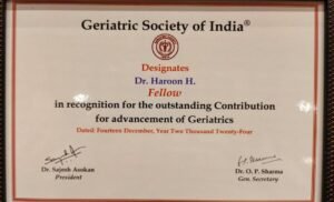 ಮಂಗಳೂರು: ಹಾಸನ ಮೂಲದ ಜನಪ್ರಿಯ ವೈದ್ಯ, ಮಂಗಳೂರಿನ ಕಸ್ತೂರ್ಬಾ ಮೆಡಿಕಲ್ ಕಾಲೇಜಿನ ಆಂತರಿಕ ಮೆಡಿಸಿನ್ ವಿಭಾಗದ ಪ್ರಾಧ್ಯಾಪಕರಾದ ಡಾ. ಎಚ್. ಹಾರೂನ್ ಅವರಿಗೆ ಕೊಚ್ಚಿಯಲ್ಲಿ ನಡೆದ ʼಜೇರಿಯಾಟ್ರಿಕ್ ಸೊಸೈಟಿ ಆಫ್ ಇಂಡಿಯಾʼ (FGSI)ದ ವಾರ್ಷಿಕ ರಾಷ್ಟ್ರೀಯ ಸಮ್ಮೇಳನದಲ್ಲಿ ʼಜೇರಿಯಾಟ್ರಿಕ್ ಸೊಸೈಟಿ ಆಫ್ ಇಂಡಿಯಾʼದ ಪ್ರತಿಷ್ಠಿತ ಫೆಲೋಶಿಪ್ ನೀಡಿ ಗೌರವಿಸಲಾಗಿದೆ.
