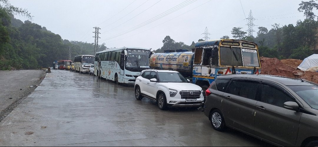 ಸಕಲೇಶಪುರ ತಾಲ್ಲೂಕಿನ ಶಿರಾಡಿಘಾಟ್ ರಸ್ತೆಯಲ್ಲಿ ರಾಷ್ಟ್ರೀಯ ಹೆದ್ದಾರಿ 75ರಲ್ಲಿ ಎರಡು ಕಡೆ ಭೂಕುಸಿತ ಉಂಟಾಗಿದೆ. ಬೆಂಗಳೂರು-ಮಂಗಳೂರು ಸಂಪರ್ಕ ಕಲ್ಪಿಸುವ ಈ ರಸ್ತೆಯಲ್ಲಿ ತಡೆಗೋಡೆ ಇದ್ದರೂ ಮಣ್ಣು ಕುಸಿಯುತ್ತಿದ್ದು, ಒಂದು ಬದಿ ವಾಹನ ಸಂಚಾರ ಸ್ಥಗಿತಗೊಂಡಿದ್ದು ವಾಹನ ದಟ್ಟಣೆಯಿಂದ ನೂರಾರು ವಾಹನಗಳು ನಿಂತಲ್ಲೆ ನಿಂತಿವೆ. ಡಿವೈಎಸ್ಪಿ ಪ್ರಮೋದ್ ಜೈನ್ ಹಾಗೂ ಅಧಿಕಾರಿಗಳು ಸ್ಥಳಕ್ಕೆ ತೆರಳಿ ಸಂಚಾರ ಸುಗಮಗೊಳಿಸಲು ಯತ್ನಿಸುತ್ತಿದ್ದಾರೆ.