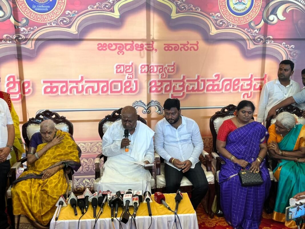 ನಂತರ ಮಾತನಾಡಿದ ಗೌಡರು, ಜಗನ್ಮಾತೆ ಹಾಸನಾಂಬೆ ತಾಯಿ ದರ್ಶನಕ್ಕೆ ಕುಟುಂಬ ಸಮೇತ ಬಂದಿದ್ದೇವೆ. ಬಾಗಿಲು ಮುಚ್ಚುವಾಗ ಇಡುವ ನೈವೇದ್ಯ ಕೆಡುವುದಿಲ್ಲ, ಹೂ ಬಾಡುವುದಿಲ್ಲ, ದೀಪ ಆರಿರುವುದಿಲ್ಲ ಎಂಬಿತ್ಯಾದಿ ನಂಬಿಕೆ ಇದೆ. ಉತ್ತರದಲ್ಲಿ ವೈಷ್ಣವಿ ಸ್ವರೂಪದಂತೆ ಇಲ್ಲಿ ಹಾಸನಾಂಬೆ ಇದ್ದಾಳೆ. ಮುಂದಿನ ಸಾರಿ ಆರೋಗ್ಯವಾಗಿ ಮೆಟ್ಟುಲು ಹತ್ತಿ ಬರುವ ಶಕ್ತಿಕೊಡು ತಾಯಿ ಎಂದು ದೇವಿಯಲ್ಲಿ ಬೇಡಿದ್ದೇನೆ. ಮುಂದಿನ ದಿನಗಳಲ್ಲಿ ನಮ್ಮ ಕುಟುಂಬದ ಎಲ್ಲರೂ ಬಂದು ದೇವಿಯ ದರ್ಶನ ಪಡೆಯಲಿದ್ದಾರೆ ಎಂದು ಹೇಳಿದರು.