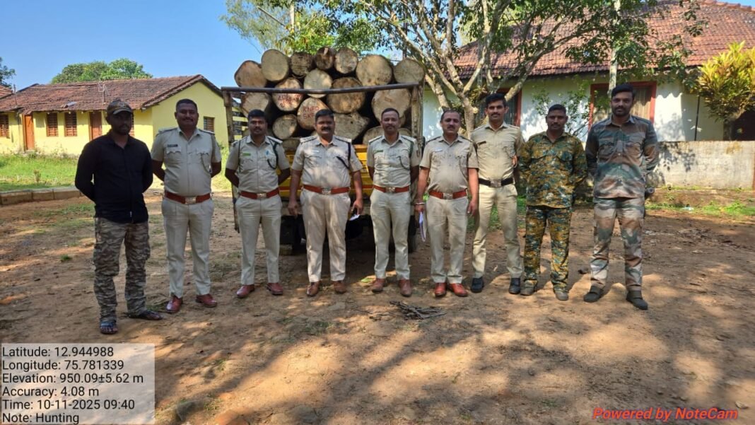 ಸಕಲೇಶಪುರ: ರಾತ್ರಿ ಗಸ್ತು ತಿರುಗುವ ವೇಳೆ ಆನೆಮಹಲ್ ಹತ್ತಿರದ *ಬೆಂಗಳೂರು–ಮಂಗಳೂರು ರಾಷ್ಟ್ರೀಯ ಹೆದ್ದಾರಿ (NH-75)*ಯಲ್ಲಿ ಅಕ್ರಮವಾಗಿ ಸಾಗಾಟವಾಗುತ್ತಿದ್ದ ಒಂದು ಲೋಡ್ ಕಾಡುಮರದ ಬಿಲೇಟ್ಸ್ಗಳನ್ನು ಅರಣ್ಯ ಇಲಾಖೆ ಅಧಿಕಾರಿಗಳು ಪತ್ತೆಹಚ್ಚಿ ವಶಪಡಿಸಿಕೊಂಡಿದ್ದಾರೆ.
