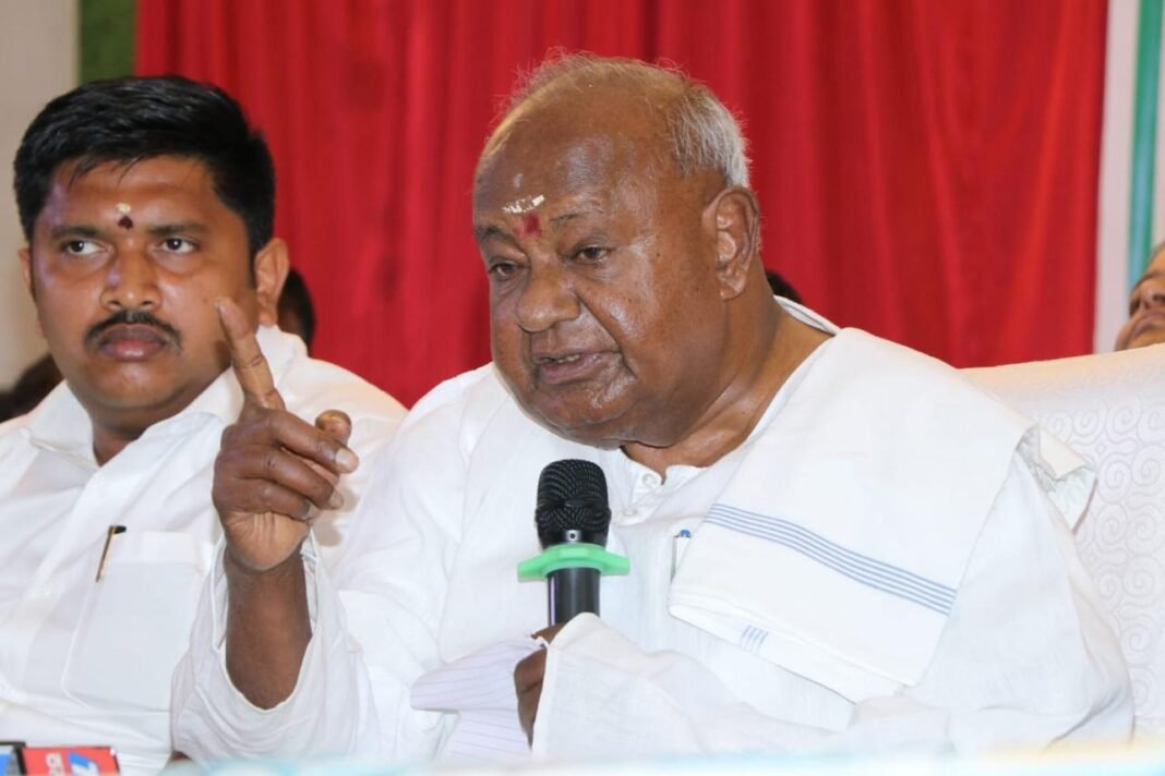 ಹಾಸನ: ಪ್ರಜ್ವಲ್ ರೇವಣ್ಣರನ್ನು ಸೋಲಿಸುವಂತೆ ಕಾಂಗ್ರೆಸ್ ಕಾರ್ಯಕರ್ತರ ಸಭೆಯಲ್ಲಿ ಭಾಷಣ ಮಾಡಿರುವ ಅರಸೀಕೆರೆ ಶಾಸಕ ಕೆ.ಎಂ.ಶಿವಲಿಂಗೇಗೌಡ ಹಾಗೂ ರಾಜ್ಯಸಭೆ ಮಾಜಿ ಸದಸ್ಯ ಎಚ್.ಕೆ.ಜವರೇಗೌಡ ವಿರುದ್ಧ ಮಾಜಿ ಪ್ರಧಾನಿ ಎಚ್.ಡಿ.ದೇವೇಗೌಡ ಗುಡುಗಿದರು.
