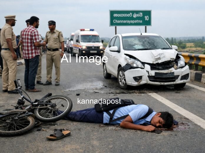 ಹೊನ್ನಶೆಟ್ಟಿಹಳ್ಳಿ ಗ್ರಾಮದ ಗಿರೀಶ್ ಅವರ ಪುತ್ರ ಸಂಜು ಅಜ್ಜಿ ಮನೆಯಿಂದ ಕಾಲೇಜಿಗೆ ಸೈಕಲ್ನಲ್ಲಿ ತೆರಳುತ್ತಿದ್ದು ರಸ್ತೆ ಕ್ರಾಸ್ ಮಾಡಲು ಹೋದ ವೇಳೆ ವೇಗವಾಗಿ ಬಂದ KA03-NL-6247 ನಂಬರ್ ಕಾರು ವಿದ್ಯಾರ್ಥಿಗೆ ಡಿಕ್ಕಿ ಹೊಡೆದಿದೆ. ಡಿಕ್ಕಿ ರಭಸಕ್ಕೆ ವಿದ್ಯಾರ್ಥಿ ಸ್ಥಳದಲ್ಲೇ ಮೃತಪಟ್ಟಿದ್ದಾನೆ.