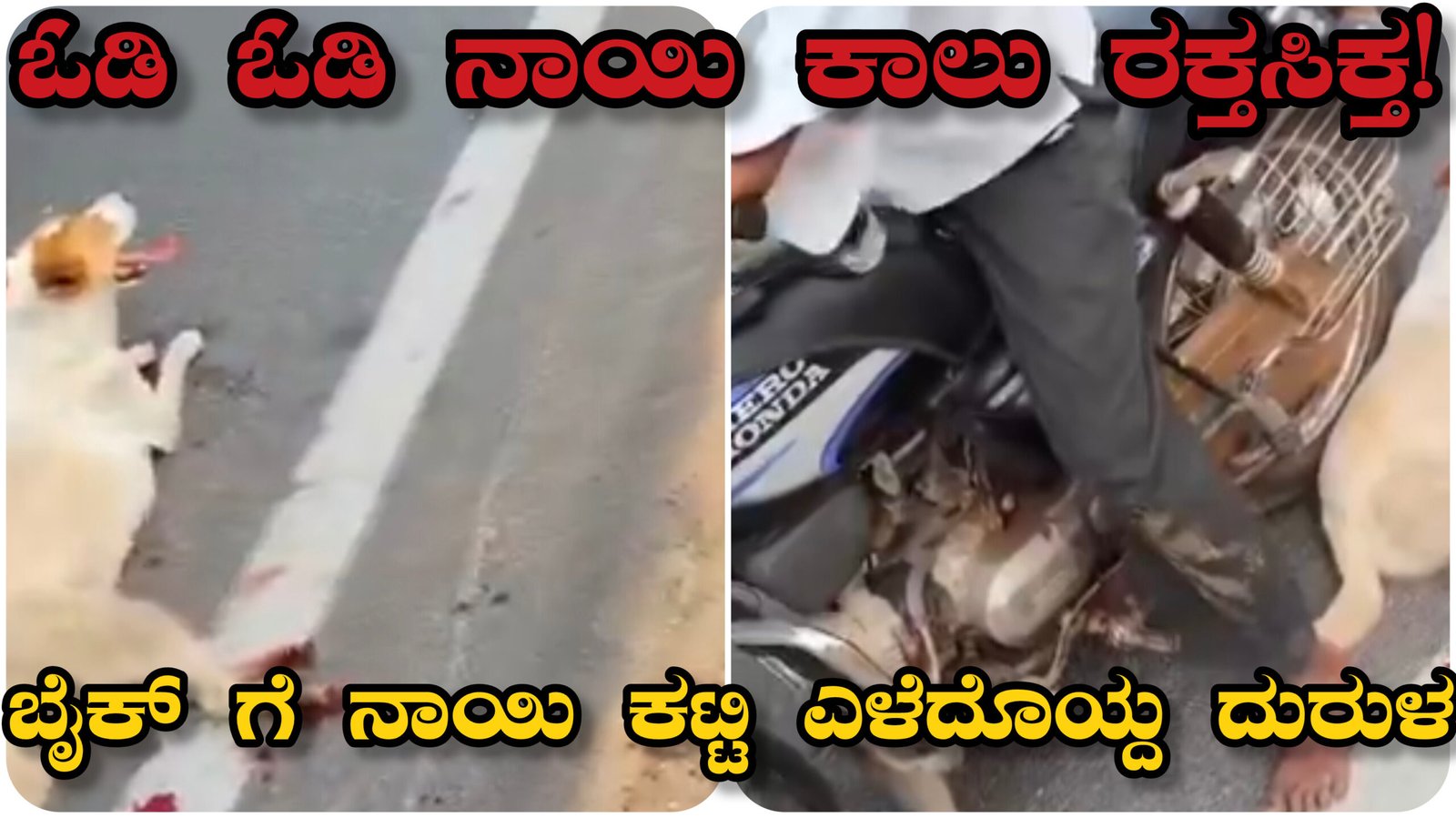 ಘಟನೆಯನ್ನು ಗಮನಿಸಿದ ಸ್ಥಳೀಯರು ತಕ್ಷಣ ಬೈಕ್ ತಡೆದು ಶ್ವಾನವನ್ನು ರಕ್ಷಿಸಿದ್ದು, ಪಾನಮತ್ತ ವ್ಯಕ್ತಿಗೆ ತರಾಟೆ ತೆಗೆದುಕೊಂಡಿದ್ದಾರೆ.