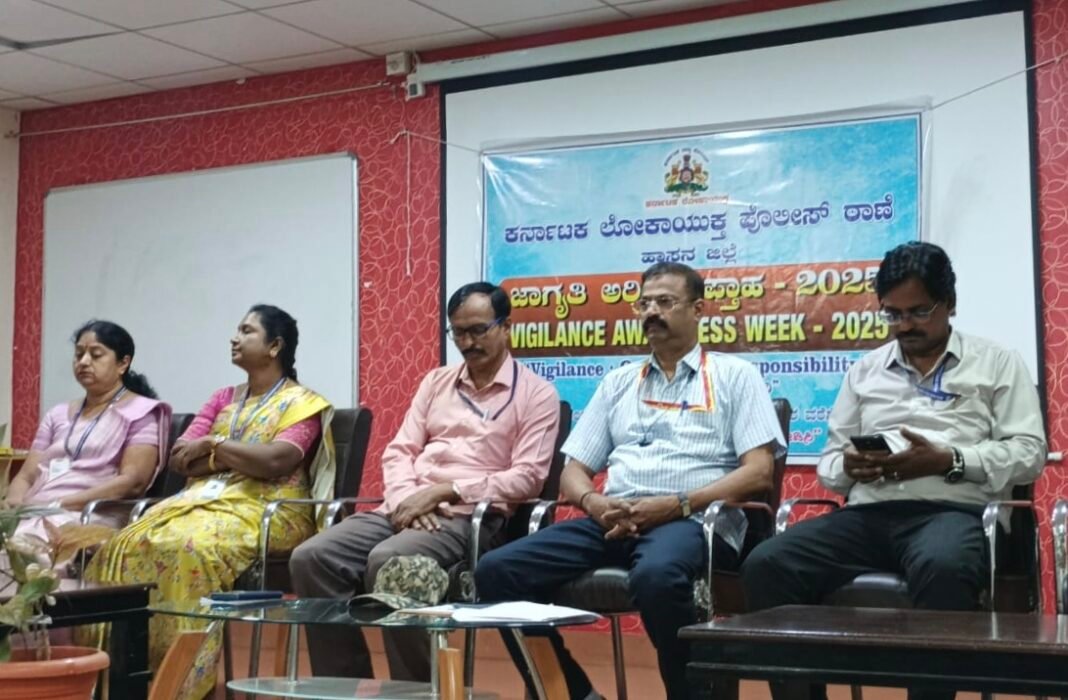 ಕಾರ್ಯಕ್ರಮವನ್ನು ಉದ್ಘಾಟಿಸಿ ಮಾತನಾಡಿದ ಹಾಸನ ಲೋಕಾಯುಕ್ತ ಡಿವೈಎಸ್ಪಿ ಸುರೇಶ್ ಅವರು, “ಭ್ರಷ್ಟಾಚಾರ ತಡೆಯುವುದು ಪ್ರತಿಯೊಬ್ಬ ನಾಗರಿಕನ ನೈತಿಕ ಕರ್ತವ್ಯವಾಗಿದೆ. ಅಧಿಕಾರಿಗಳು, ಸರ್ಕಾರಿ ನೌಕರರು ಹಾಗೂ ಸಾರ್ವಜನಿಕರು ಯಾವುದೇ ಸಂದರ್ಭದಲ್ಲೂ ಲಂಚ ಸ್ವೀಕರಿಸಬಾರದು. ಪ್ರಾಮಾಣಿಕತೆ ಮತ್ತು ದೇಶಾಭಿಮಾನದಿಂದ ಕೆಲಸ ಮಾಡಿದಾಗ ಮಾತ್ರ ಸಮಾಜ ಶುದ್ಧವಾಗುತ್ತದೆ” ಎಂದು ಹೇಳಿದರು.