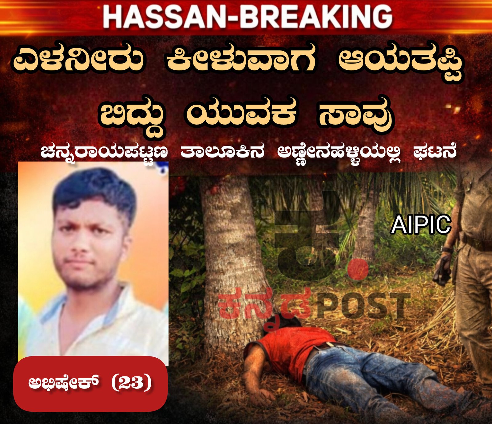 ಮೃತ ಯುವಕನನ್ನು ಅಭಿಷೇಕ್ (23) ಎಂದು ಗುರುತಿಸಲಾಗಿದೆ. ಮೂಲಗಳ ಪ್ರಕಾರ, ಅಭಿಷೇಕ್ ಎಳನೀರು ಕೀಳಲು ತೆಂಗಿನಮರಕ್ಕೆ ಹತ್ತಿದ್ದ ವೇಳೆ ಏಕಾಏಕಿ ಕಾಲು ಜಾರಿ ಕೆಳಗೆ ಬಿದ್ದಿದ್ದಾನೆ ಎನ್ನಲಾಗಿದೆ.