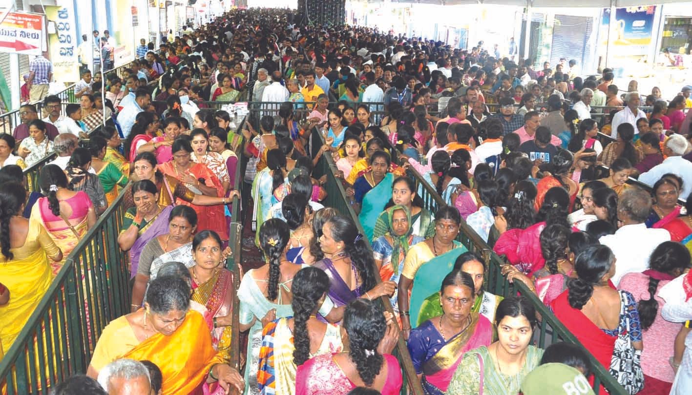➡️ ಭಕ್ತರ ಸಂಖ್ಯೆ ಅನಿರೀಕ್ಷಿತವಾಗಿ ಹೆಚ್ಚಿರುವುದರಿಂದ ದೇವಸ್ಥಾನ ಪ್ರದೇಶ ಮತ್ತು ಅದರ ಸುತ್ತಮುತ್ತ ಕಲ್ಪಿಸಿರುವ ಸ್ಥಳಾವಕಾಶ ತುಂಬಿಕೊಂಡಿದೆ.