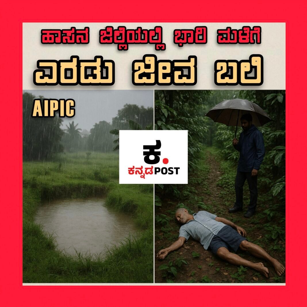 ಹಾಸನ, ಮೇ 31: ಜಿಲ್ಲೆಯಲ್ಲಿ ಭಾರೀ ಮಳೆಯಿಂದಾಗಿ ಎರಡು ದುರದೃಷ್ಟಕರ ಸಾವುಗಳು ಸಂಭವಿಸಿವೆ.