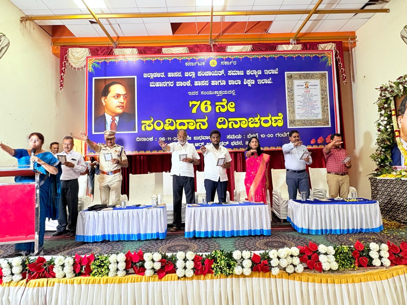 ಹಾಸನ: ಡಾ. ಬಿ.ಆರ್. ಅಂಬೇಡ್ಕರ್ ಭವನದಲ್ಲಿ ಜಿಲ್ಲಾಡಳಿತದ ಸಂಯುಕ್ತಾಶ್ರಯದಲ್ಲಿ ಇಂದು, ೨೦೨೫ರ ನವೆಂಬರ್ ೨೬, ಬುಧವಾರದಂದು, ಆಯೋಜಿಸಲಾಗಿದ್ದ ೭೬ನೇ ಸಂವಿಧಾನ ದಿನಾಚರಣೆ ಕಾರ್ಯಕ್ರಮದಲ್ಲಿ ಭಾಗವಹಿಸಿದ ಹಾಸನ ಲೋಕಸಭಾ ಸಂಸದರಾದ ಶ್ರೇಯಸ್ ಎಂ. ಪಾಟೀಲ್ ಅವರು ಸಂವಿಧಾನದ ಮಹತ್ವದ ಕುರಿತು ಪ್ರಬಲ ಸಂದೇಶ ನೀಡಿದರು.