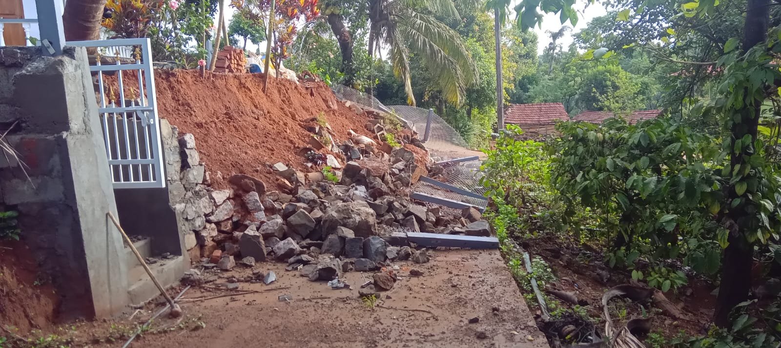 ಭಾರೀ ಮಳೆಗೆ ಸಕಲೇಶಪುರ ತಾಲ್ಲೂಕಿನ ಗಡಿ ಗ್ರಾಮ ತಂಬಲಗೇರಿಯಲ್ಲಿ ಪುಟ್ಟೇಗೌಡ ಎಂಬವರ ಮನೆ ಕಾಂಪೌಂಡ್ ಕುಸಿದು ಬಿದ್ದಿದೆ. ಗ್ರಾಮದಲ್ಲಿ ಗದ್ದೆಗಳಿಗೆ ಮಣ್ಣು ಕುಸಿದಿದ್ದು ಭತ್ತದ ಸಸಿಗಳು ಕೆಸರಿನಲ್ಲಿ ಸಮಾಧಿಯಾಗಿವೆ. ಭತ್ತದ ಗದ್ದೆ ಮೇಲೆ ಹಳ್ಳದ ನೀರು ಉಕ್ಕಿ ಹರಿಯುತ್ತಿದ್ದು ಬೆಳೆ ಮಣ್ಣುಪಾಲಾಗಿದೆ. ಗ್ರಾಮದ ಕೃಷಿಕರಿಗೆ ಲಕ್ಷಾಂತರ ರೂ. ನಷ್ಟವಾಗಿದೆ.