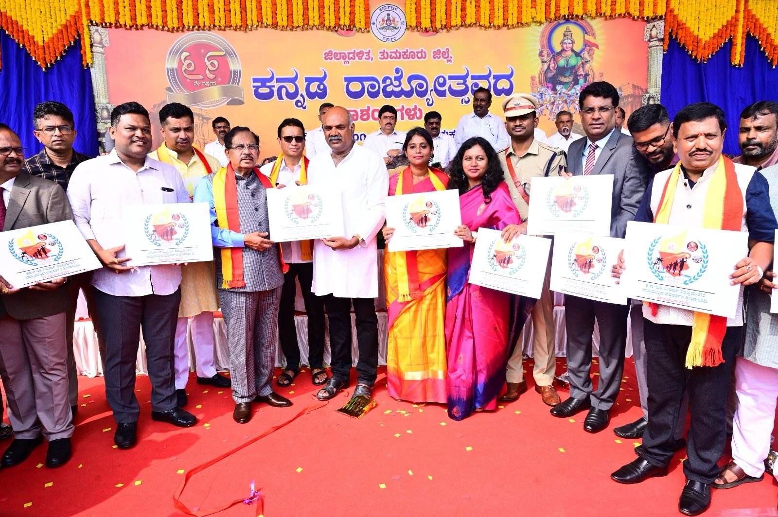 ತುಮಕೂರು ನಗರದ ಮಹಾತ್ಮ ಗಾಂಧಿ ಕ್ರೀಡಾಂಗಣದಲ್ಲಿ ಶುಕ್ರವಾರ ಜರುಗಿದ ಜಿಲ್ಲಾ ರಾಜ್ಯೋತ್ಸವ ವೇದಿಕೆಯಲ್ಲಿ ಕ್ರೀಡಾ ಲಾಂಛನವನ್ನು ಅನಾವರಣ ಮಾಡಿದ್ದು ವಿಶೇಷವಾಗಿತ್ತು.