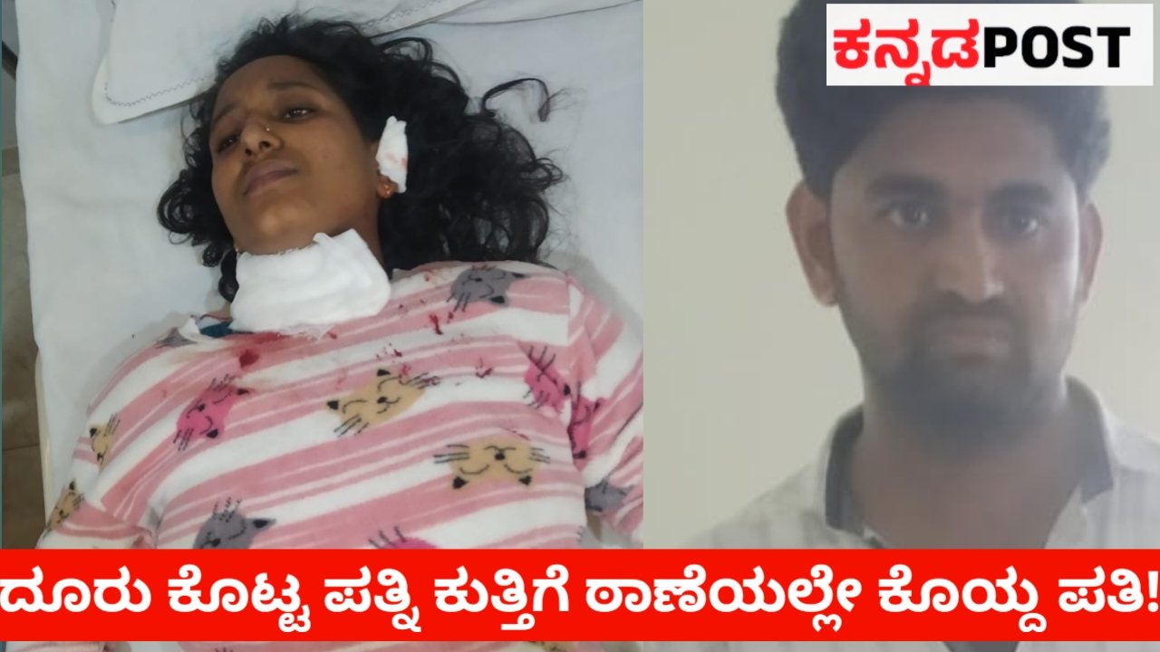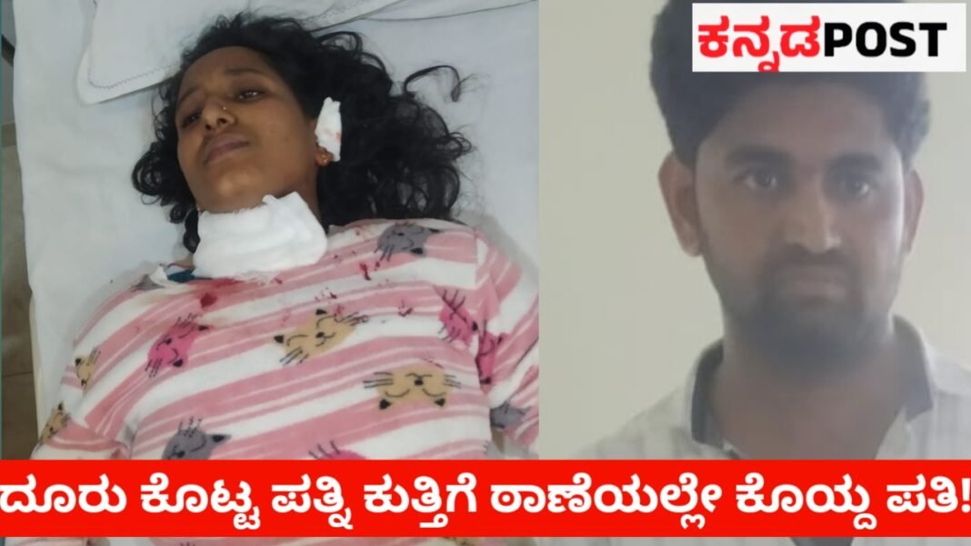 ದೂರು ಕೊಟ್ಟ ಪತ್ನಿಯ ಕುತ್ತಿಗೆಯನ್ನು ಪೊಲೀಸ್ ಠಾಣೆಯಲ್ಲೇ ಕೊಯ್ದ ಪತಿ!