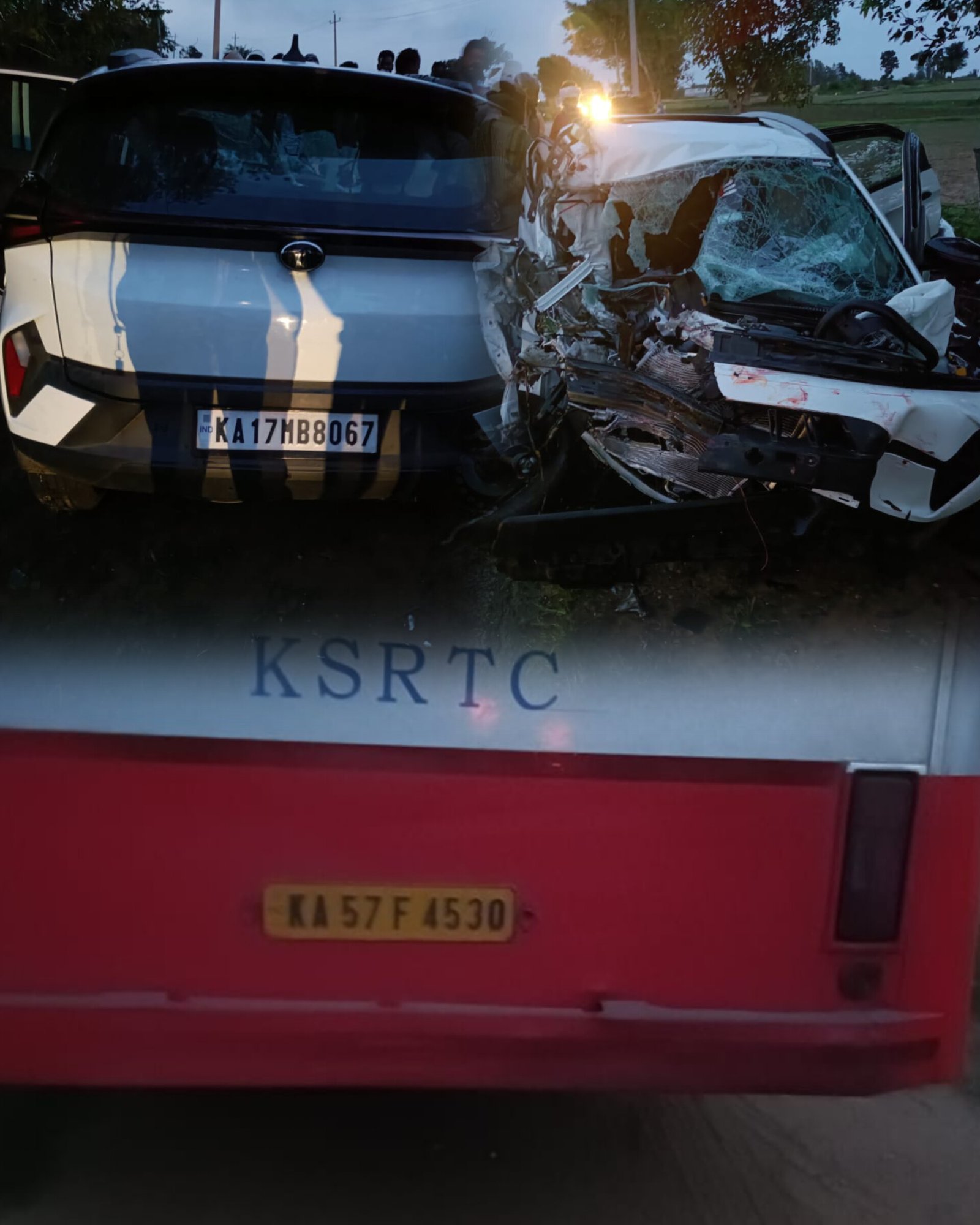 ಹಾಸನದ ಕಡೆಗೆ ಬರುತ್ತಿದ್ದ KA-57 F 4530 ನಂಬರ್ನ ಸಾರಿಗೆ ಬಸ್ ಗೆ ಧರ್ಮಸ್ಥಳಕ್ಕೆ ಭೇಟಿ ನೀಡಿ ದಾವಣಗೆರೆಗೆ ತೆರಳುತ್ತಿದ್ದ KA-17 MB-8067 ನಂಬರ್ನ ಕಾರು ಮುಖಾಮುಖಿ ಡಿಕ್ಕಿಯಾಗಿದೆ.