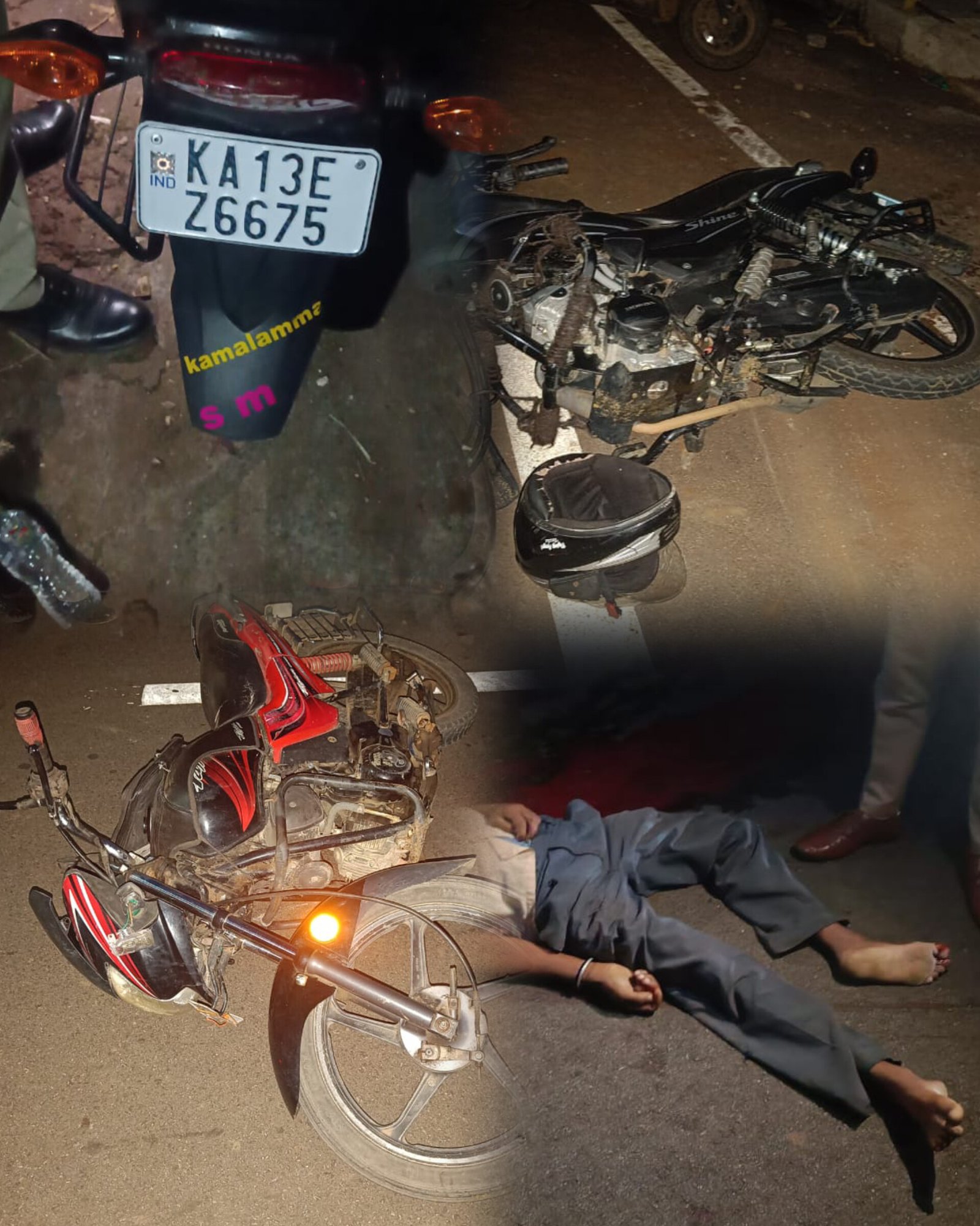 ಮರಿಯಾ ನಗರದ ಗಣೇಶ್ (40) ಮೃತ ವ್ಯಕ್ತಿ, ಸಮಗಂಭೀರವಾಗಿ ಗಾಯಗೊಂಡ ಮತ್ತೋರ್ವ ಬೈಕ್ ಸವಾರ ಸುರೇಶ್ ಎಂಬವರನ್ನು ಚಿಕಿತ್ಸೆಗಾಗಿ ಹಿಮ್ಸ್ ಗೆ ರವಾನಿಸಲಾಗಿದೆ.