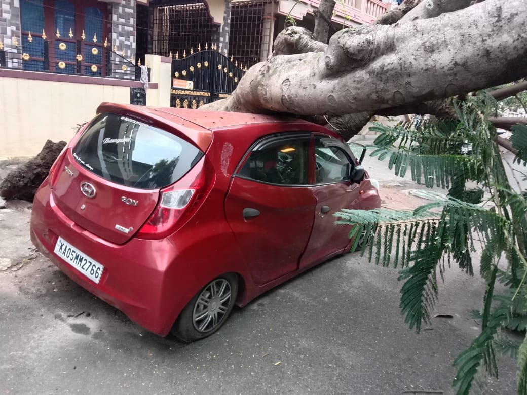 ಕುವೆಂಪುನಗರದ ರಾಕೇಶ್ ಎಂಬವರಿಗೆ ಸೇರಿದ ಹುಂಡೈ ಇಯಾನ್ ಕಾರು ಜಖಂಗೊಂಡಿದ್ದು, ಅದೃಷ್ಟವಶಾತ್ ಯಾರಿಗೂ ಅಪಾಯವಾಗಿಲ್ಲ.