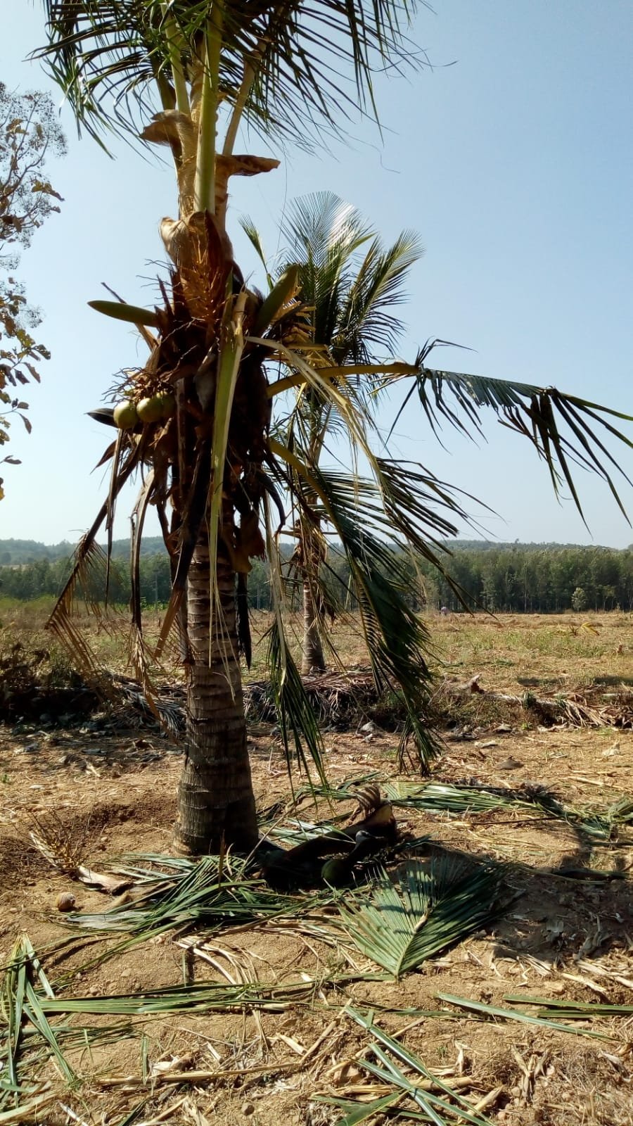 ಗ್ರಾಮದ ಗಿರೀಶ್ ಎಂಬ ರೈತ ತಮ್ಮ ಜಮೀನಿನಲ್ಲಿ ಬೆಳೆದಿದ್ದ ತೆಂಗಿನಮರಗಳನ್ನು ಕಳೆದುಕೊಂಡು ಕಣ್ಣೀರಿಟ್ಟಿದ್ದಾರೆ.