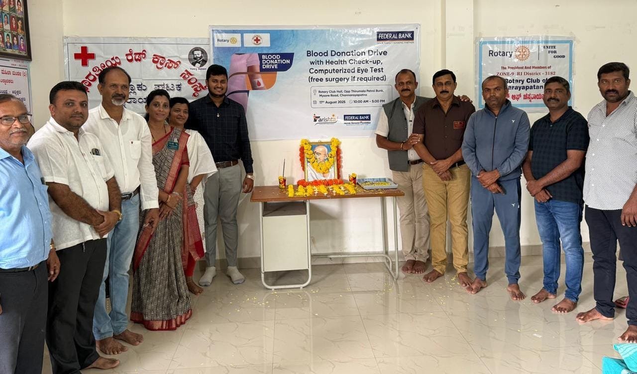 ೭೯ನೇ ಸ್ವತಂತ್ರ ದಿನಾಚರಣೆಯ ಅಂಗವಾಗಿ ಬೃಹತ್ ಆರೋಗ್ಯ ತಪಾಸಣಾ ಶಿಬಿರ ಹಾಗೂ ರಕ್ತದಾನ ಶಿಬಿರವನ್ನು ಆಯೋಜಿಸಲಾಗಿತ್ತು. ಕಾರ್ಯಕ್ರಮವನ್ನು ರೋಟರಿ ಕ್ಲಬ್ ಅಧ್ಯಕ್ಷರಾದ ಜ್ಯೋತಿ, ಭಾರತೀಯ ರೆಡ್ ಕ್ರಾಸ್ ಸಂಸ್ಥೆ ಚೇರ್ಮನ್ ಭರತ್ ಕುಮಾರ್ ಹೆಚ್. ಜಿ ಚೇರ್ಮನ್, ಫೆಡರಲ್ ಬ್ಯಾಂಕ್ ವ್ಯವಸ್ಥಾಪಕರು ವಿಜಯ ಉದ್ಘಾಟಿಸಿದರು.