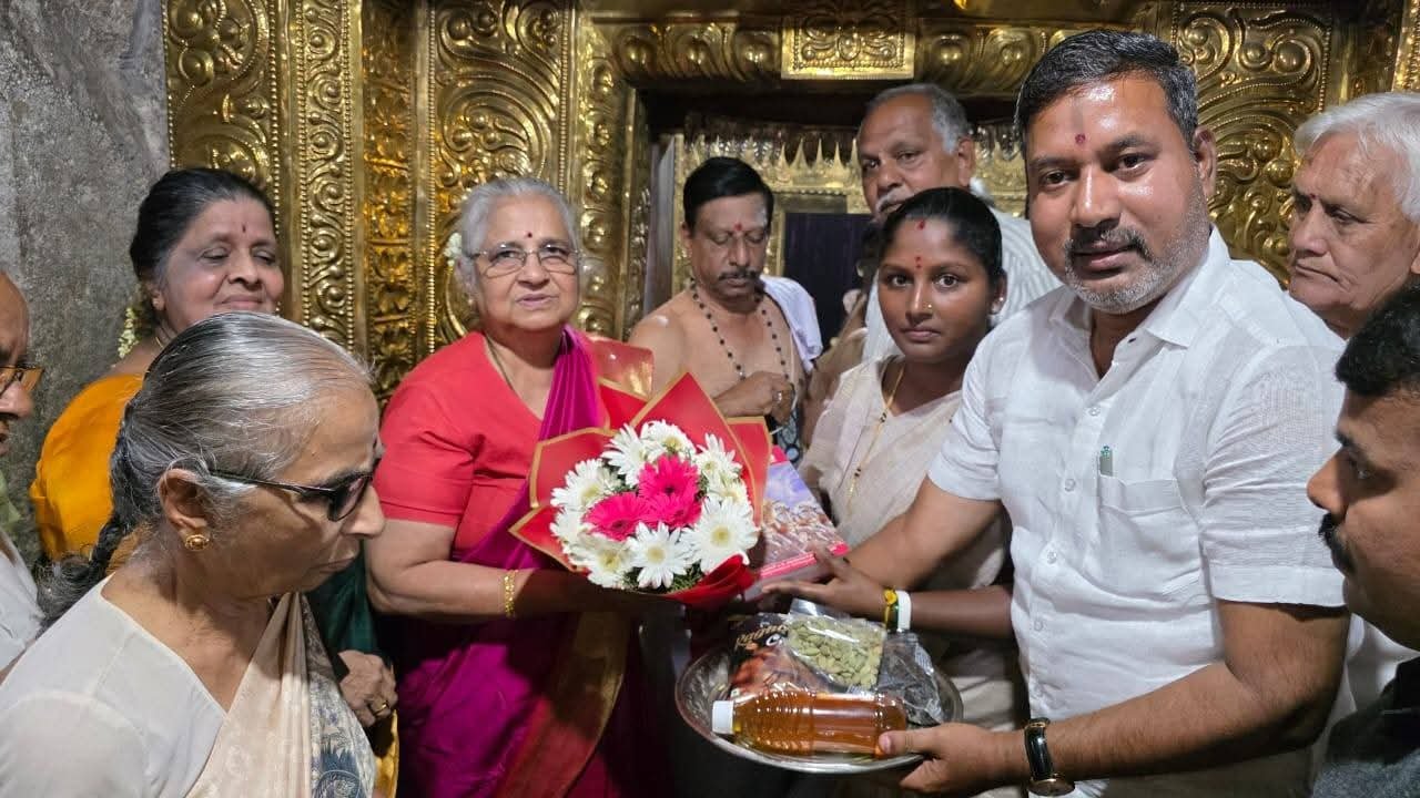 Infosys CEO and Rajya Sabha member Sudha Murthy visited the town’s Swami temple for a private function and offered special prayers on behalf of her family.