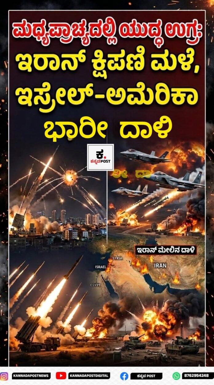 ಇಸ್ರೇಲ್: ಮಧ್ಯಪ್ರಾಚ್ಯದಲ್ಲಿ ಯುದ್ಧ ಉಗ್ರ: ಇರಾನ್ ಕ್ಷಿಪಣಿ ಮಳೆ, ಇಸ್ರೇಲ್-ಅಮೆರಿಕಾ ಭಾರೀ ದಾಳಿ