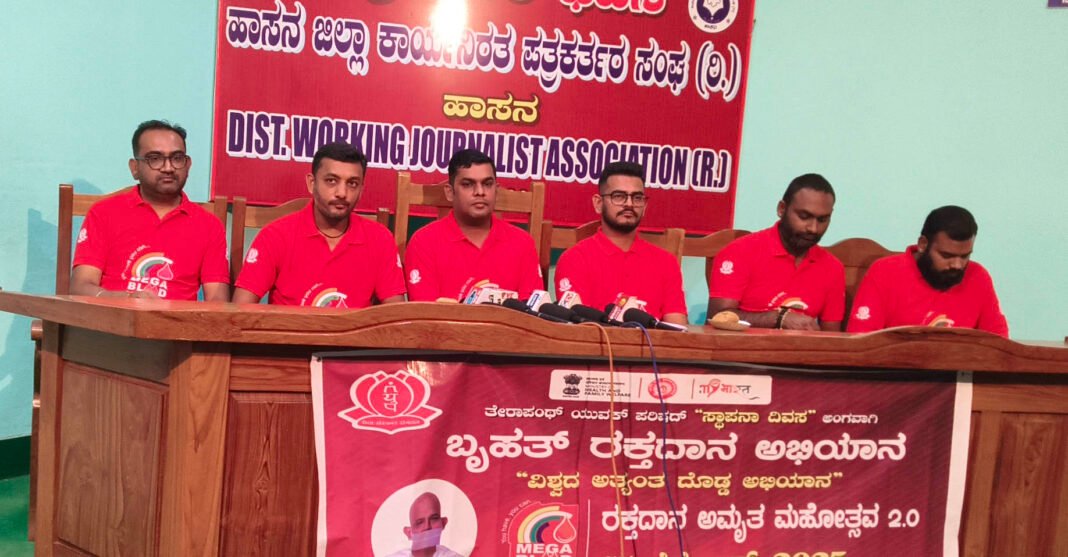 ಹಾಸನ: ನಗರದ ತೇರಾಪಂಥ್ ಭವನದಲ್ಲಿ ಸೆ.17 ರಂದು ರಕ್ತದಾನ ಅಮೃತ ಮಹೋತ್ಸವ2.0 ಹೆಸರಿನಲ್ಲಿ ಮೆಗಾ ರಕ್ತದಾನ ಶಿಬಿರ ನಡೆಯಲಿದೆ ಎಂದು ಅಖಿಲ ಭಾರತೀಯ ತೇರಾಪಂಥ್ ಯುವಕ್ ಪರಿಷದ್ ಪರವಾಗಿ ಜಯಂತ್ ತಿಳಿಸಿದರು.