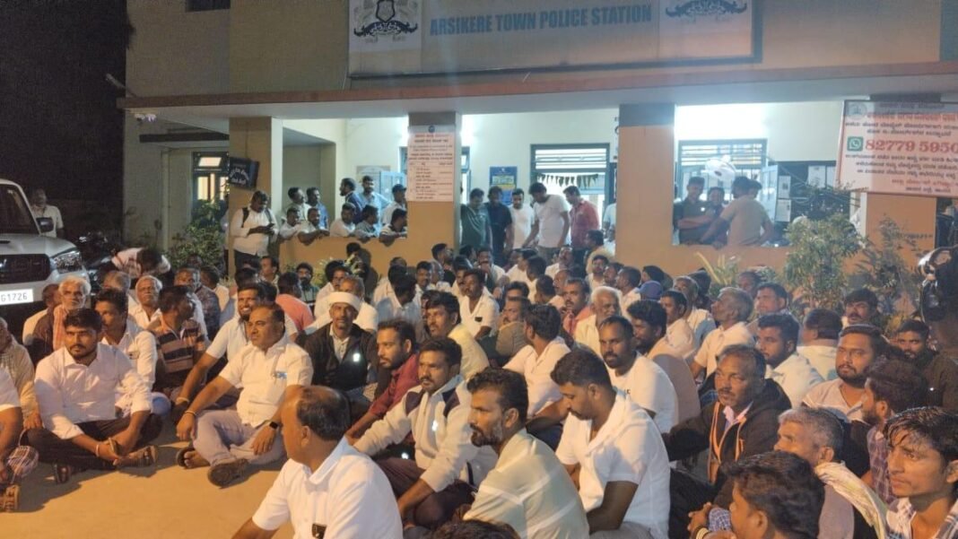 ಅರಸೀಕೆರೆ ಯಲ್ಲಿ ಶಾಸಕರಾದ ಕೆ ಎಂ ಶಿವಲಿಂಗೇಗೌಡ ವಿರುದ್ಧ FIR ದಾಖಲಿಸುವಂತೆ ಒತ್ತಾಯಿಸಿ ಜೆಡಿಎಸ್ ಮುಖಂಡರು ಮತ್ತು ಕಾರ್ಯಕರ್ತರಿಂದ ಪೊಲೀಸ್ ಠಾಣೆ ಎದುರು ಪ್ರತಿಭಟನೆ