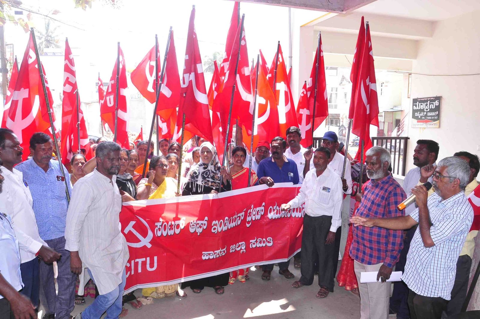 ಕನಿಷ್ಠ ವೇತನ ಅಂತಿಮ ಅಧಿಸೂಚನೆ ಜಾರಿಗೆ ಆಗ್ರಹಿಸಿ ಹಾಸನದಲ್ಲಿ ಕಾರ್ಮಿಕರ ಪ್ರತಿಭಟನೆ