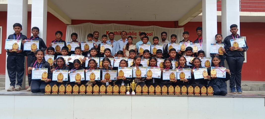 ಹಿನ್ನೆಲೆಯಲ್ಲಿ ದೈಹಿಕ ಶಿಕ್ಷಣ ಶಿಕ್ಷಕ ಪುಟ್ಟರಾಜು ಹಾಗೂ ವಿದ್ಯಾರ್ಥಿಗಳನ್ನು ಸಂಸ್ಥೆ ವತಿಯಿಂದ ಶುಕ್ರವಾರ ಅಭಿನಂದಿಸಲಾಯಿತು. ಸಂಸ್ಥೆಯ ಅಧ್ಯಕ್ಷ ಅನಂತ ಕೃಷ್ಣಮೂರ್ತಿ, ಕಾರ್ಯದರ್ಶಿ ರೇಣುಕಾ ದೇವಿ, ಮುಖ್ಯಶಿಕ್ಷಕ ಚೇತನ್ ಕುಮಾರ್ ಬಿ.ಸಿ. ಹಾಗೂ ಶಿಕ್ಷಕ ವೃಂದ ಮತ್ತು ಸಿಬ್ಬಂದಿ ವರ್ಗ ಹಾಜರಿದ್ದರು.
