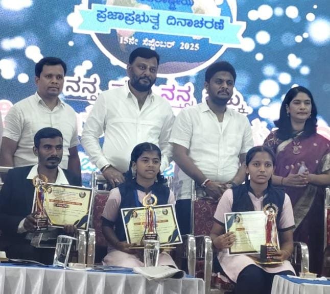ಹಾಸನದ ಅಂಬೇಡ್ಕರ್ ಭವನದಲ್ಲಿ ನಡೆದ ಅಂತರರಾಷ್ಟ್ರೀಯ ಪ್ರಜಾಪ್ರಭುತ್ವ ದಿನಾಚರಣೆ ಕಾರ್ಯಕ್ರಮದಲ್ಲಿ ಸಂಸದ ಶ್ರೇಯಸ್ ಪಟೇಲ್ ಬಹುಮಾನ ವಿತರಿಸಿದರು. ಎಂ. ಕೃಷ್ಣ ಕಾನೂನು ಮಹಾವಿದ್ಯಾಲಯದ ಮಂಡಳಿ ಹಾಗೂ ಪ್ರಾಂಶುಪಾಲರು ಕೀರ್ತಿರಾಜ್ಗೆ ಅಭಿನಂದನೆ ಸಲ್ಲಿಸಿದ್ದಾರೆ.