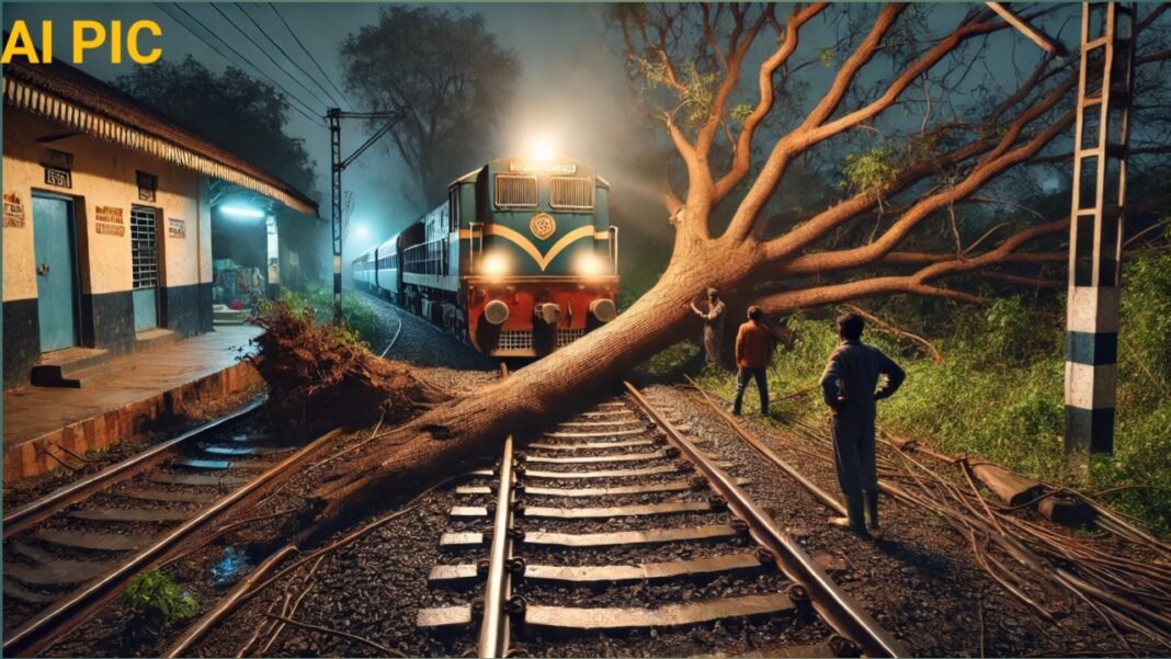 Home ಕ್ರೈಮ್‌ ರೈಲ್ವೆ ಹಳಿಗೆ ಉರುಳಿ ಬಿದ್ದ ಬೃಹತ್ ಮರ: ರೈಲು ಚಾಲಕನ ಸಮಯ ಪ್ರಜ್ಞೆಯಿಂದ ತಪ್ಪಿದ ಭಾರಿ...